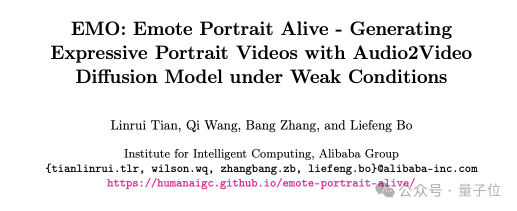 论文显示,EMO团队来自阿里巴巴智能计算研究院。