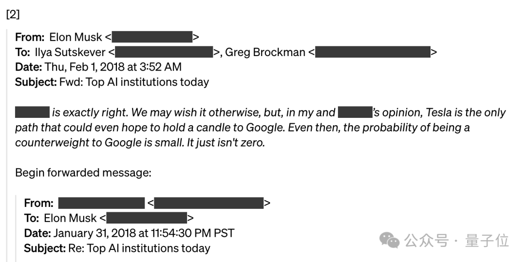 为了佐证通告中提到的事实,OpenAI还附上了马斯克与奥特曼、Brockman和Ilya等人往来的电子邮件。