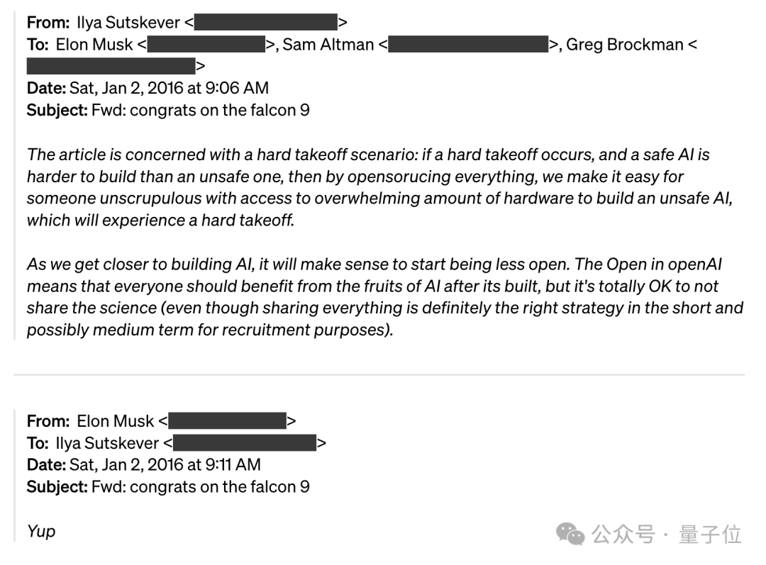 这封邮件后还有Ilya的回复,正文中“‘Open’AI不代表将所有技术公开”的观点,也是在这封邮件中提出的。