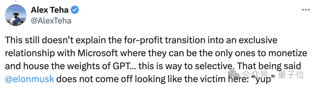 但不买账的网友接着表示,即使这一说法成立,也无法对OpenAI从非营利机构走向营利公司给出合理解释。