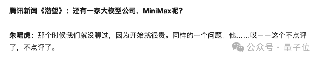 最近,金沙江创投主管合伙人朱啸虎在腾讯科技的访谈中还坦言,当初就没跟MiniMax聊过,“因为开始就很贵”:
