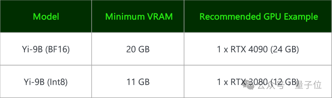 Yi-9B(BF 16) 和其量化版 Yi-9B(Int8)都能在消费级显卡上部署。