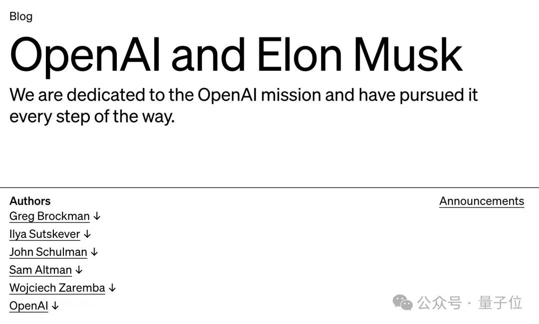 直到几天前OpenAI就马斯克诉讼发通告,并公开了马斯克与OpenAI高管的往来邮件,公告作者名单中才终于出现了Ilya的名字。