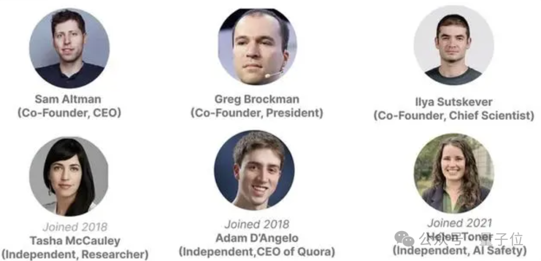 奥特曼被罢免前,原董事会的六名成员分别是: