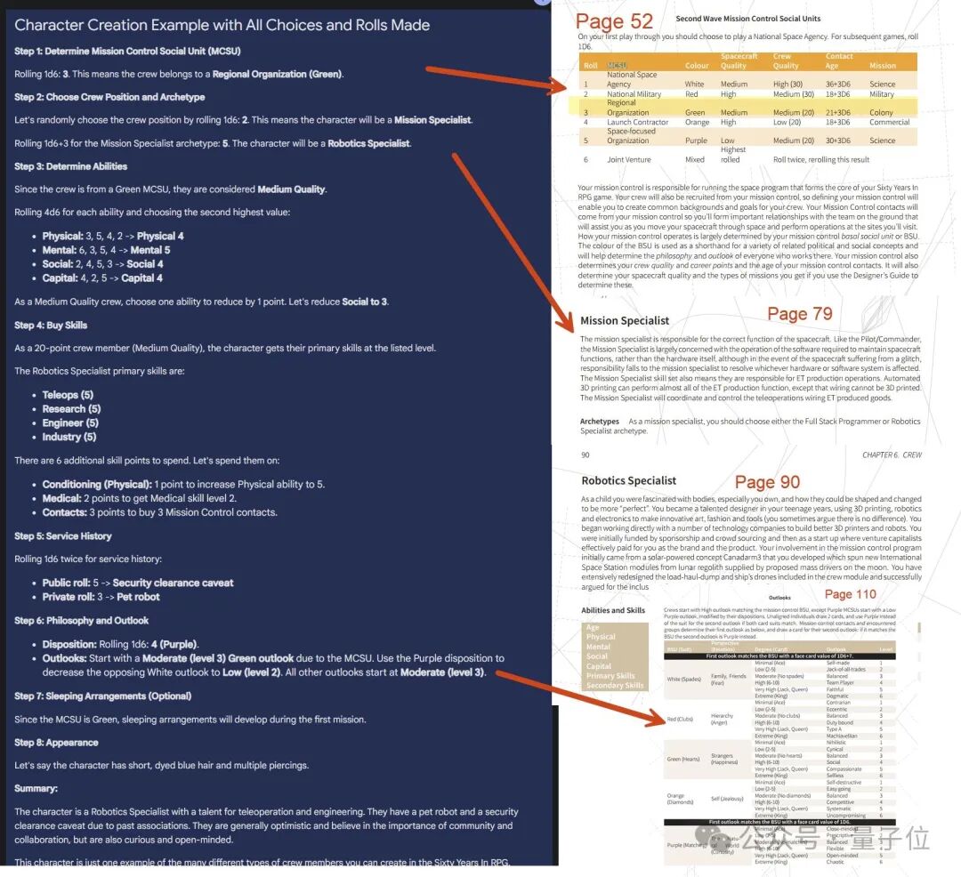 沃顿商学院教授Ethan Mollick也来整活了。输给Gemini 1.5 Pro一本352页的《太空60年》规则手册,约250000token,然后要求它扮演一个角色。