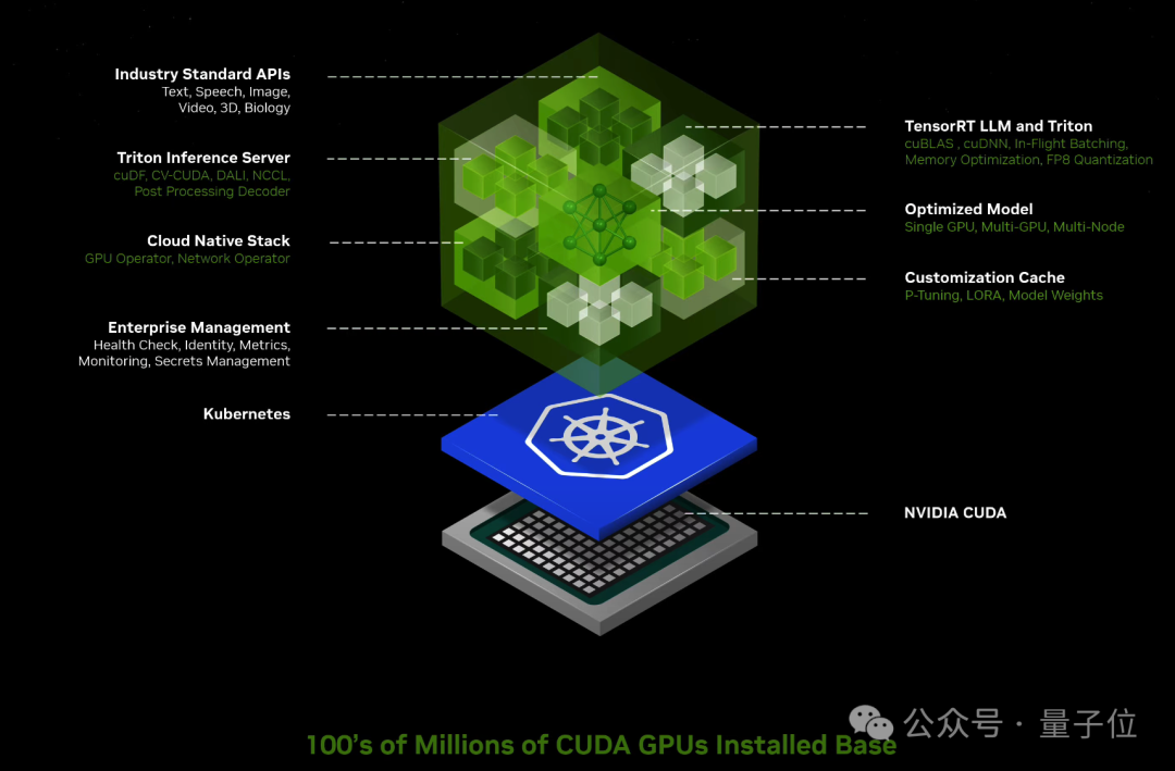 从此,英伟达NIM和CUDA做为中间枢纽,连接了百万开发者与上亿GPU芯片。