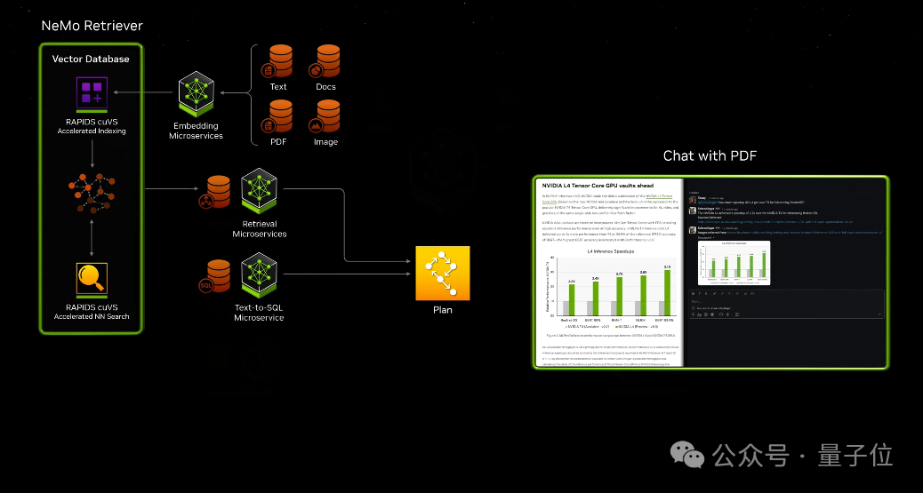 比如通过这些微服务,可以轻松构建基于大模型和向量数据库的ChatPDF产品,甚至智能体Agent应用。