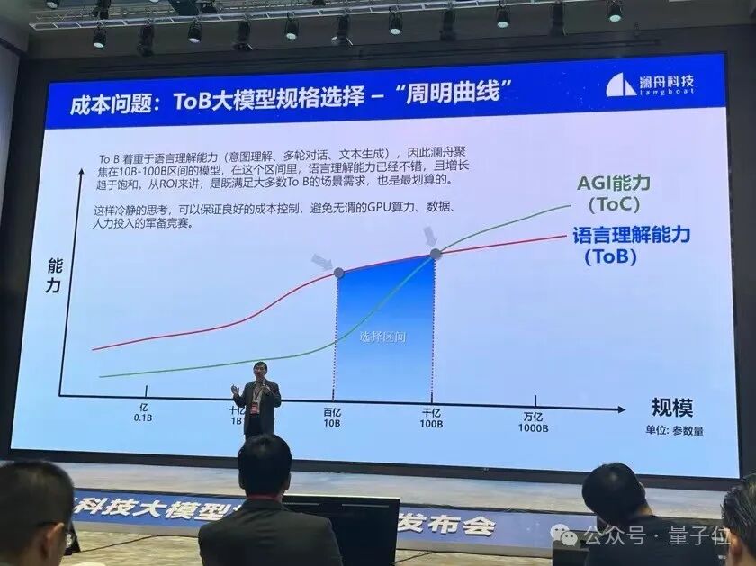 实践发现,ToB场景使用频率最高的大模型参数量多为7B、13B、40B、100B,整体集中在10B-100B之间。