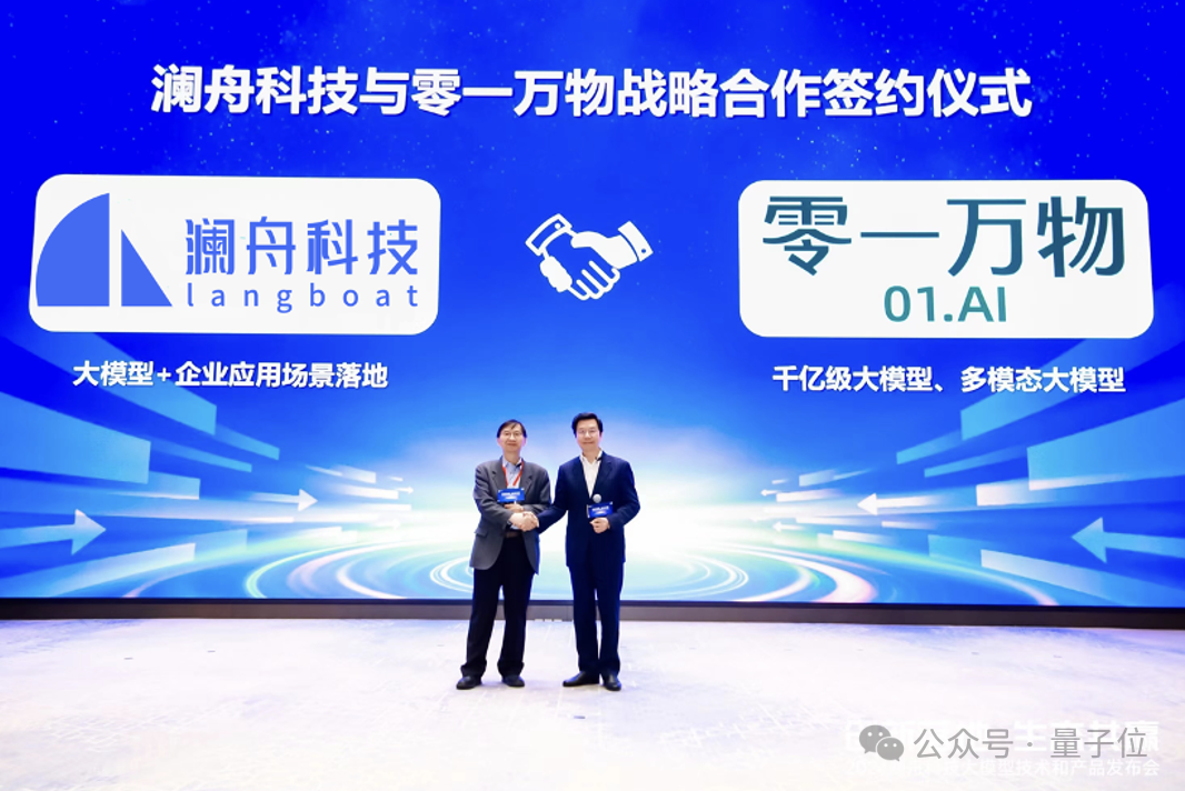 3月18日的澜舟大模型技术和产品发布会现场,澜舟科技还与零一万物进行了战略合作签约。