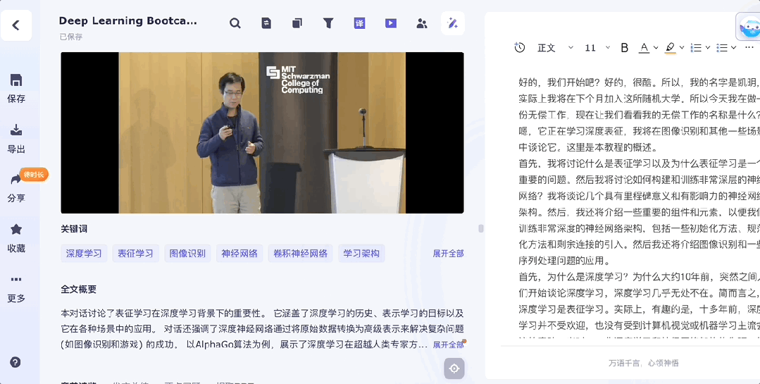 笔记整理方面也有实用设计,推出一键插入视频时间戳及截图功能,笔记整理效率再提升一大截。