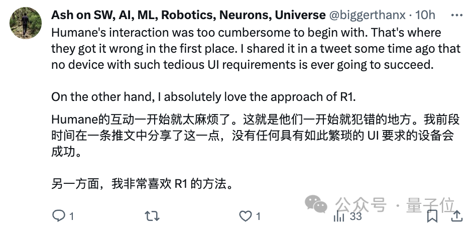 无论是售价、首批火爆程度,还是使用便捷度(无需订阅),R1看起来都比前段时间刷屏的另一款AI硬件——AI Pin有那么一点优势。