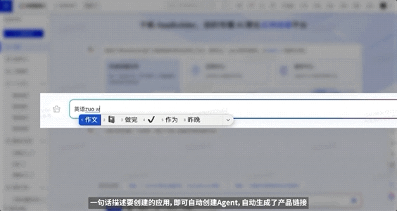做一个“英语作文批改小帮手”应用,只需在AppBuilder中输入应用名称或者希望开发的功能,平台就能自动生成应用。