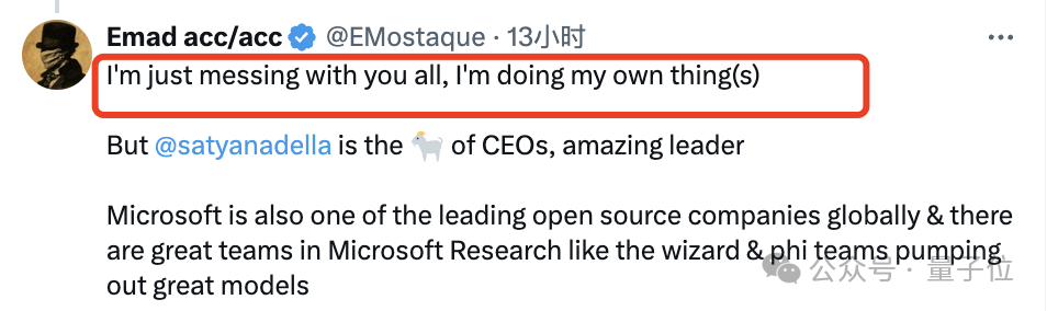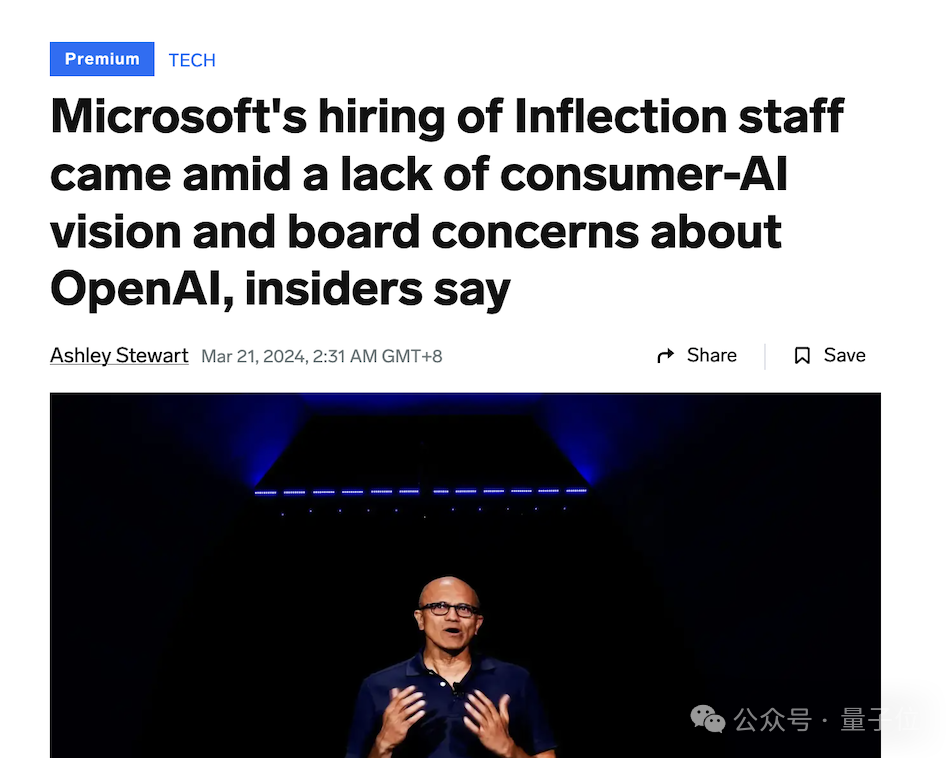 参考链接:[1]https://twitter.com/EMostaque/status/1772594194315436266?s=20[2]https://www.bloomberg.com/news/articles/2024-03-26/microsoft-bing-chief-exiting-role-after-suleyman-named-ai-leader[3]https://www.theverge.com/2024/3/25/24111931/microsoft-windows-surface-pavan-davuluri[4]https://www.businessinsider.com/microsoft-hired-inflection-team-amid-board-concerns-about-openai-2024-3[5]https://www.businessinsider.com/microsoft-insiders-worry-company-has-become-just-it-for-openai-2024-3