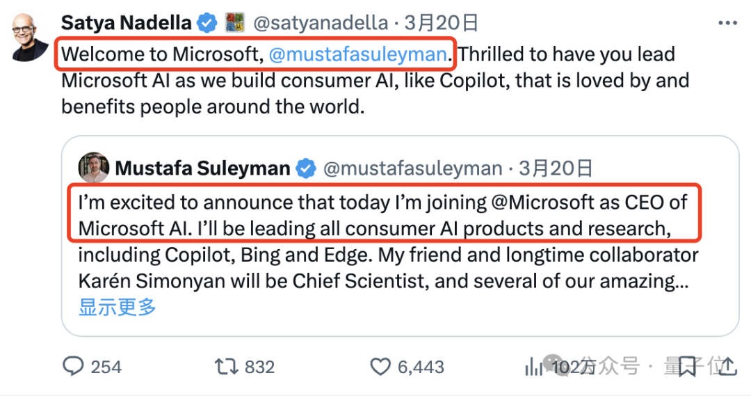 这不,上周DeepMind联创苏莱曼刚成为微软全新AI部门CEO——