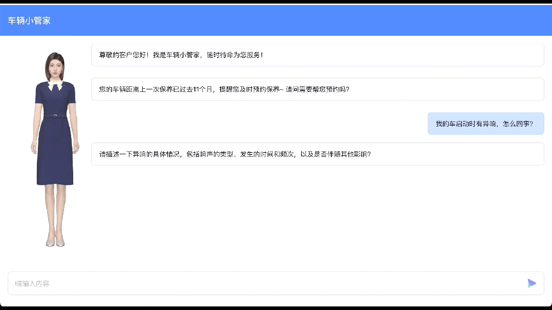 根据客户描述的车辆故障症状,大模型可以推理并调用知识库车书,进行初步判断并给出具体建议,最终协助完成检修预约。