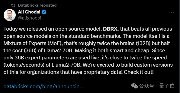 大数据巨头Databricks,刚刚发布MoE大模型DBRX,并宣称: