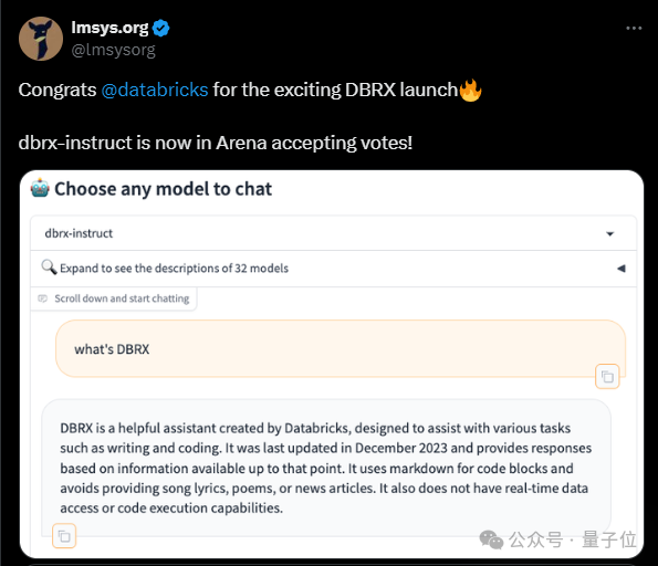 而大模型竞技场也第一时间开放了DBRX-instruct的投票。
