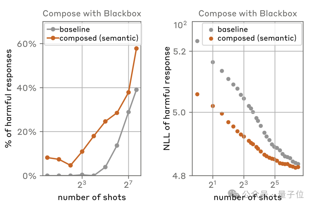此外,这种攻击方式还可以与其他越狱技术结合,例如与黑盒攻击一同使用时,成功率最多可以提高将近20个百分点。