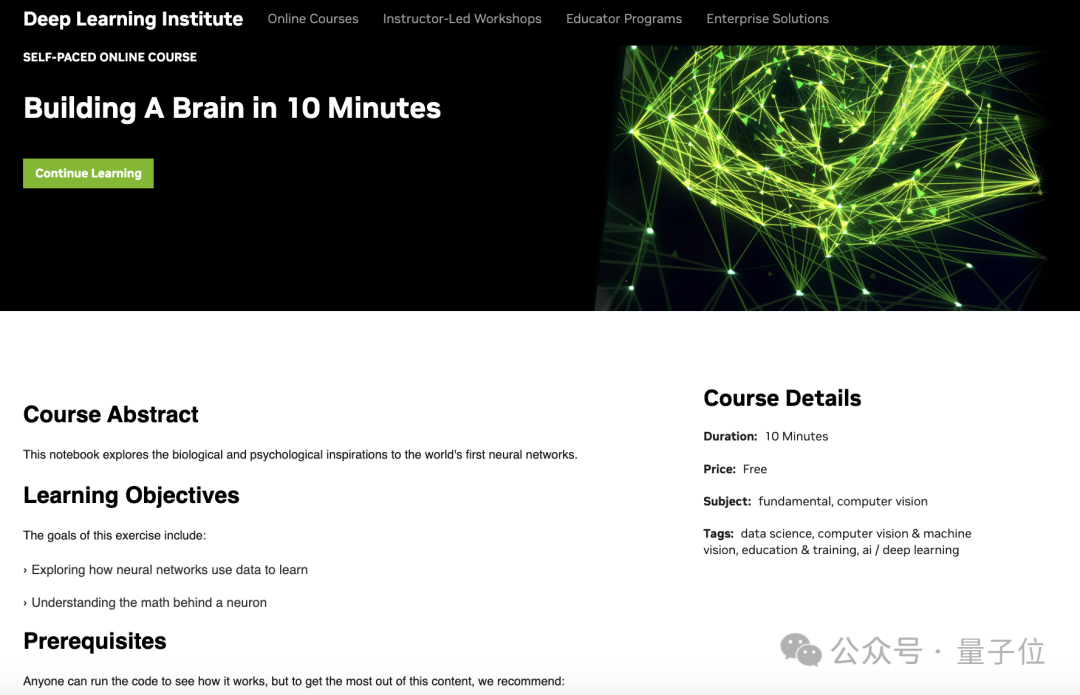这节课时长仅有10分钟,探讨了世界上第一个神经网络背后的生物学和心理学灵感。