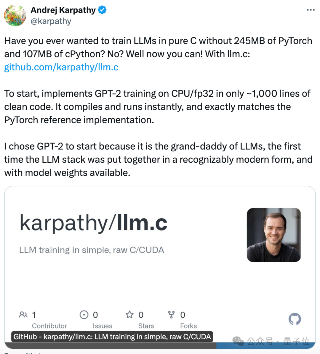 参考链接:[1]https://twitter.com/karpathy/status/1777427944971083809[2]https://twitter.com/karpathy/status/1777493157485437009[3]https://twitter.com/karpathy/status/1777481372636246491?s=46&t=iTysI4vQLQqCNJjSmBODPw