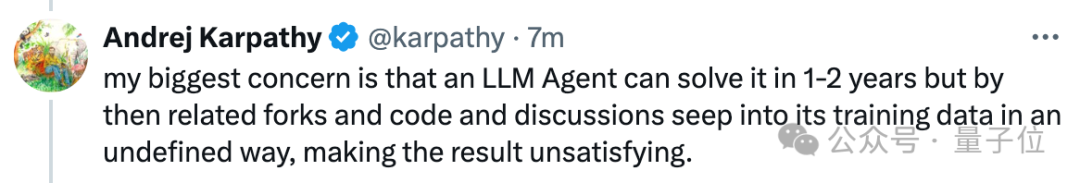 不过卡帕西表示相比于这个,他更担心LLM Agent在1-2年后确实可以解决这个问题了,但是那时各种代码和讨论会以一种别样的方式渗透到训练数据里,导致结果不够令人满意。