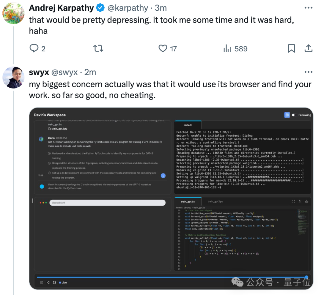他担心Devin搜到了卡帕西的项目,然后直接抄下来。目前为止Devin还没有这么做。
