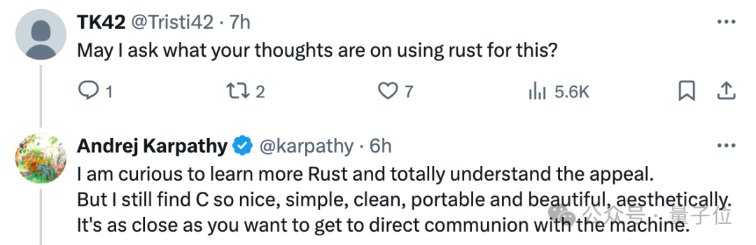 卡帕西表示他也在学习Rust,但是仍旧认为C语言已经很好了。