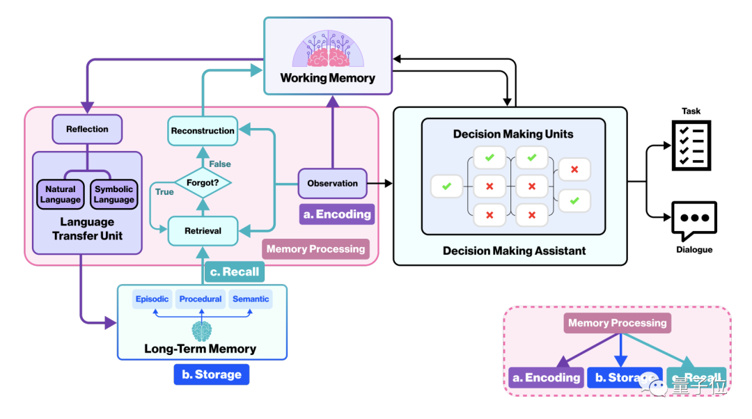 然后工作记忆会输入到决策模块,最终产生决策或对话内容。