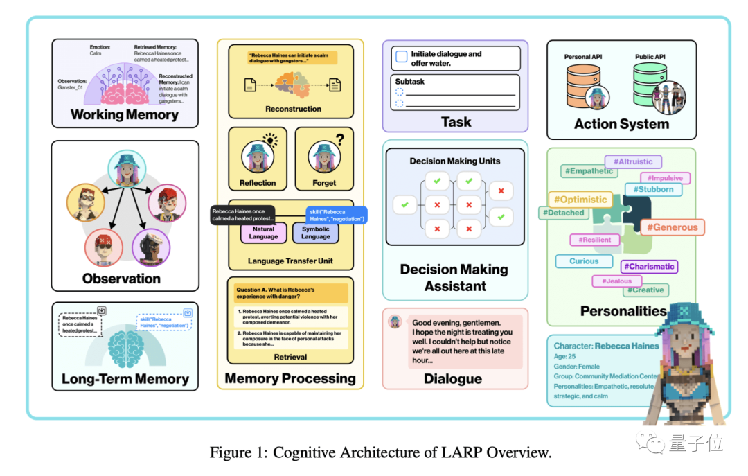 LARP的结构是模块化的,具体包括了认知、人格、记忆、决策等组成部分。