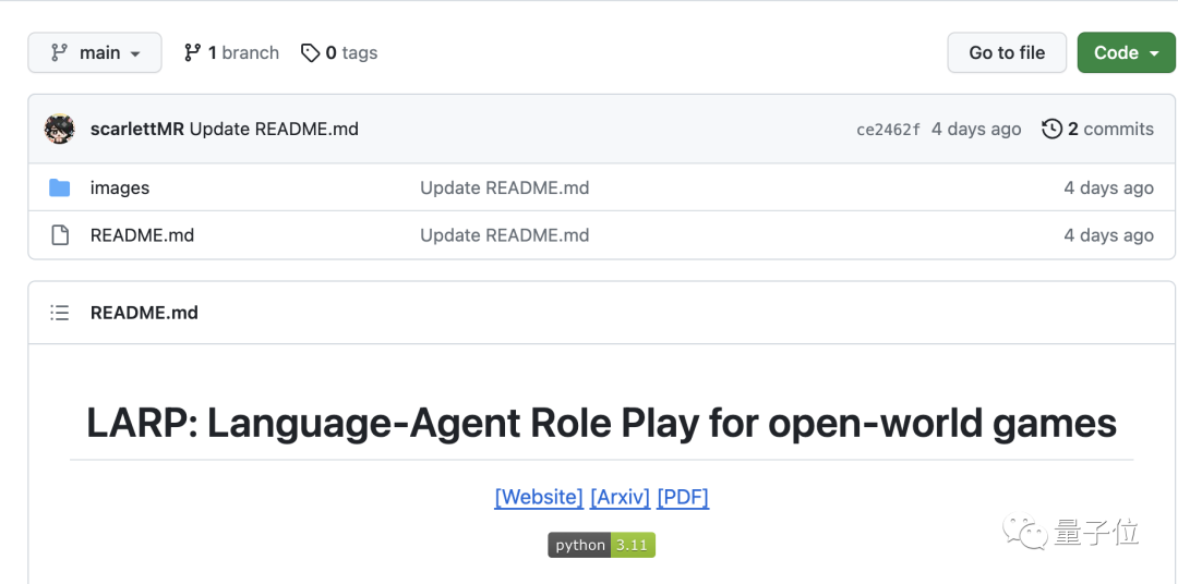目前,LARP的GitHub页面已经建立,不过还处于空仓状态,代码暂未发布。