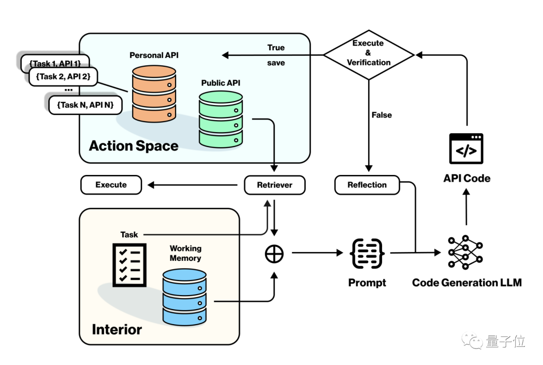 模型所做出的决策,会通过环境交互模块调用API来执行,必要时还会调用回溯模块进行代码重建;