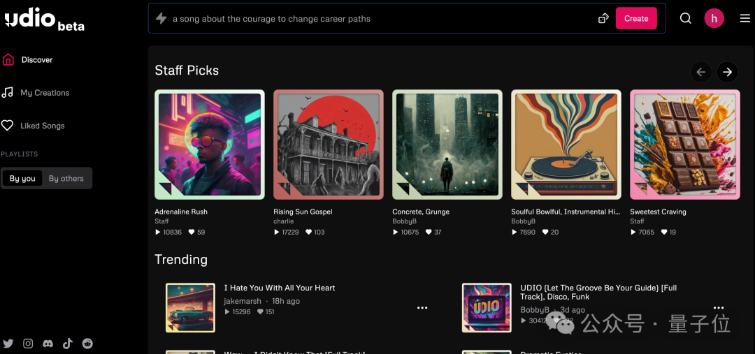 友情链接:https://www.udio.com/参考链接:https://twitter.com/udiomusic/status/1778045340978933989https://twitter.com/DavidDingAI/status/1778559157127254027https://twitter.com/futuristflower/status/1778379253513351193
