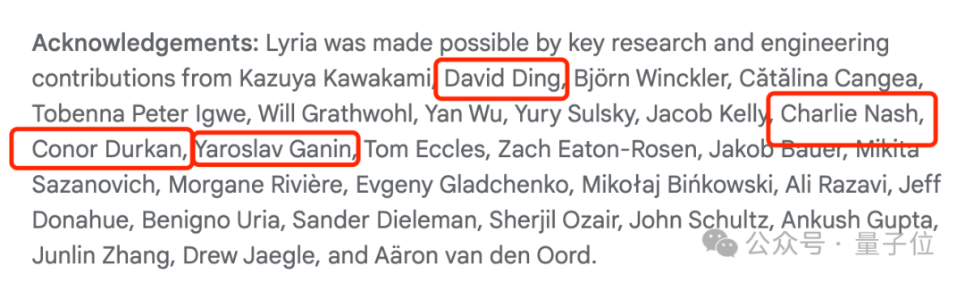 而我们对比Lyria的贡献者名单,可以发现Udio4位联创的名字都赫然在列: