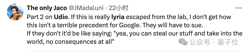 不过,我们很快看到有人在评论表示Udio和Lyria底层并不一样。