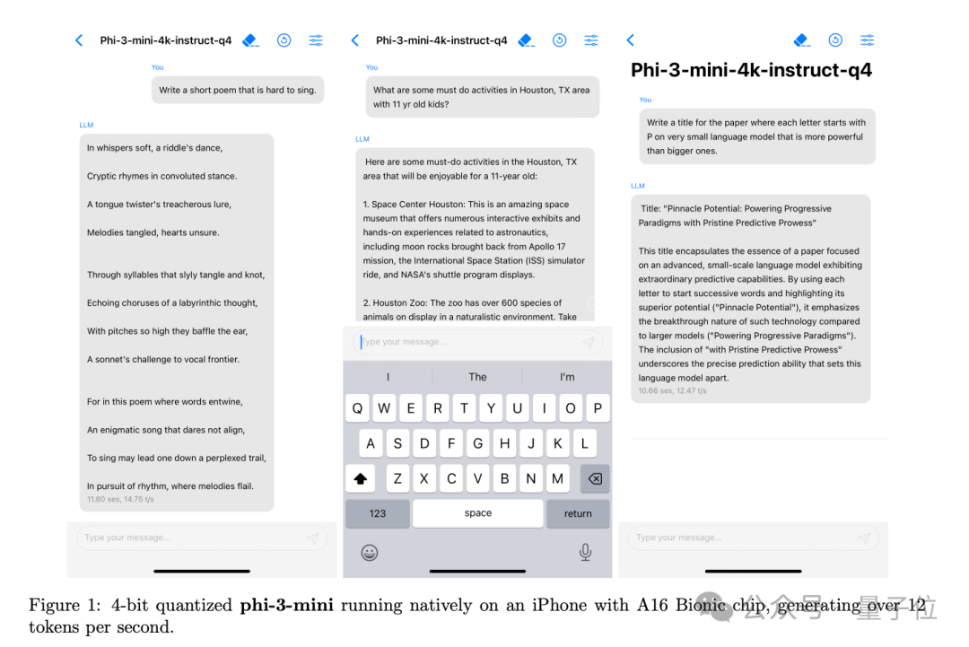 微软这次打出“手机就能直接跑的小模型”的旗号,4bit量化后的phi-3-mini在iPhone 14 pro和iPhone 15使用的苹果A16芯片上跑到每秒12 token。
