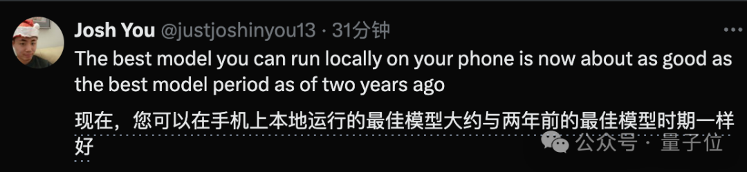 这意味着,现在手机上能本地运行的最佳开源模型,已经做到ChatGPT水平。