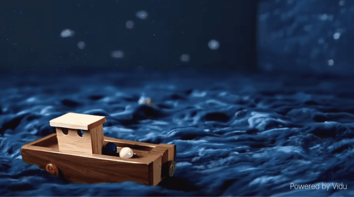 比如在下面这个场景中,「帆船」、「海浪」罕见地出现在了画室里,而且海浪与帆船的交互动态非常自然。