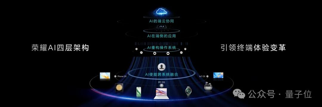 在使用体验背后,荣耀还更为明确地提出了终端设备的AI四层架构理论: