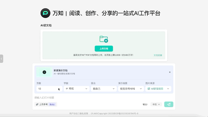 万知小程序就像是你的口袋里的AI,无论你是在通勤的路上,还是在咖啡厅里,只需简单地提问,万知就能迅速帮你解读文档,提炼关键信息;如果你需要更细致的调整和更全面的功能,万知网页版就是你的不二选择,修改PPT细节、针对文档截图提问等等功能一应俱全。