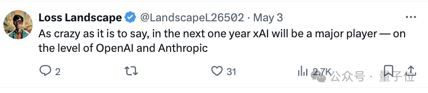 参考链接:[1]https://twitter.com/Pavel_Izmailov[2]https://twitter.com/jam3scampbell/status/1786149919041970683[3]https://x.ai/about[4]https://x.com/emollick/status/1787593669618393299