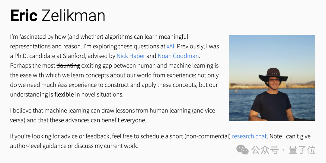 Eric Zelikman,斯坦福博士在读生,推特上写明“study why @xai”。