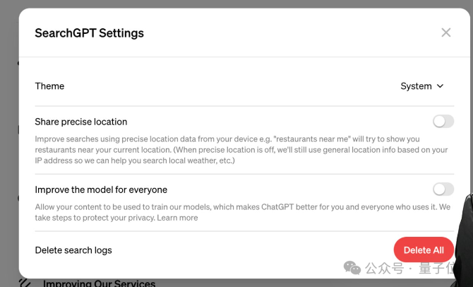 改进我们的服务:查询可能会被审查并用于训练我们的模型。您可以在设置菜单中调整您对改进我们服务的偏好。任何更改都将在ChatGPT和SearchGPT之间传递。