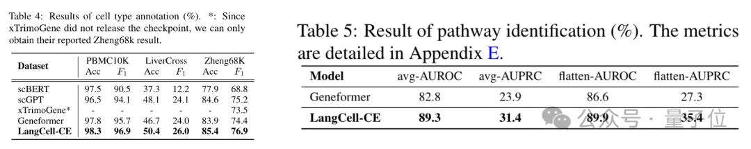 在多个细胞类型注释任务的数据集上,CE模块的成绩都超过了前SOTA,在细胞通路识别上的表现也十分优异。