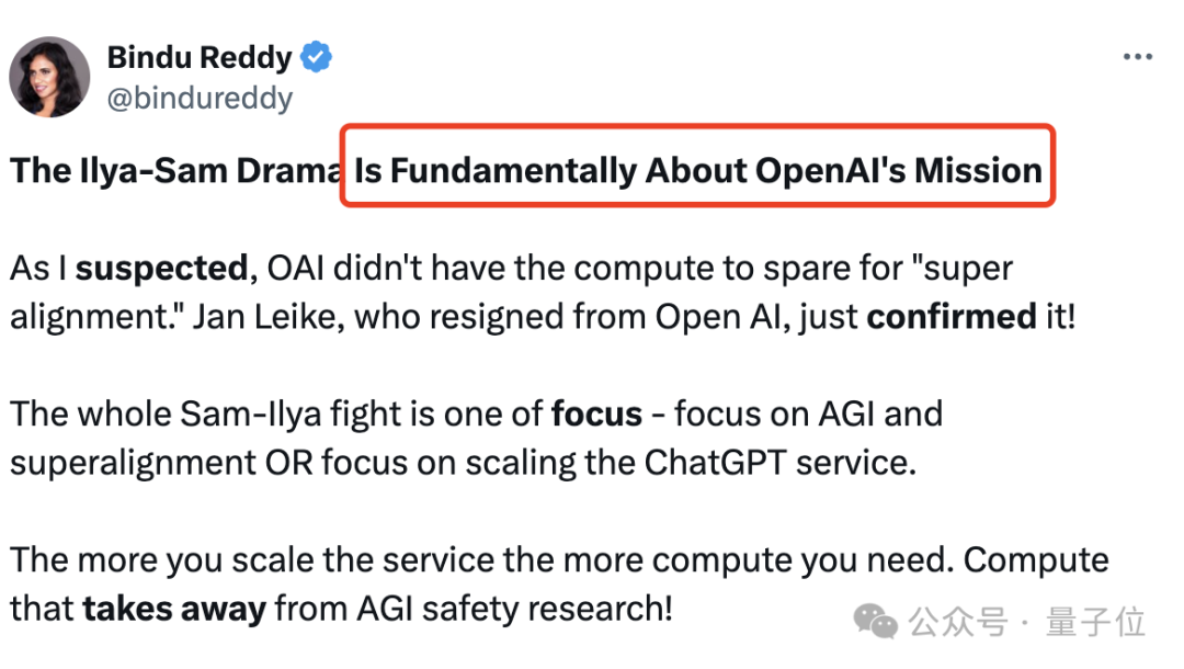 当然是因为算力资源对AI公司来说重要至极,每一点都要合理分配;也因为超级对齐团队的工作是“解决如果公司成功构建AGI,实际上会出现不同类型的安全问题”。