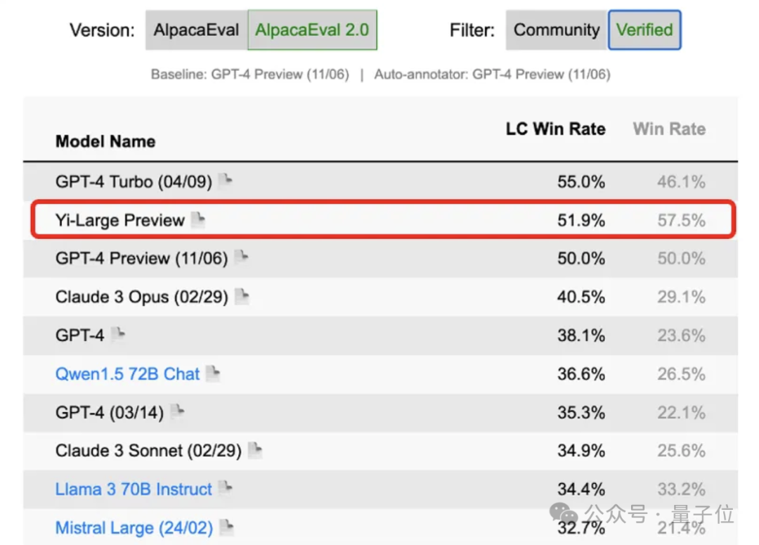 再来看Yi-Large排名之前的前6名中,有4个模型来自GPT,另外有1个谷歌的Gemini,1个Anthropic的Claude。