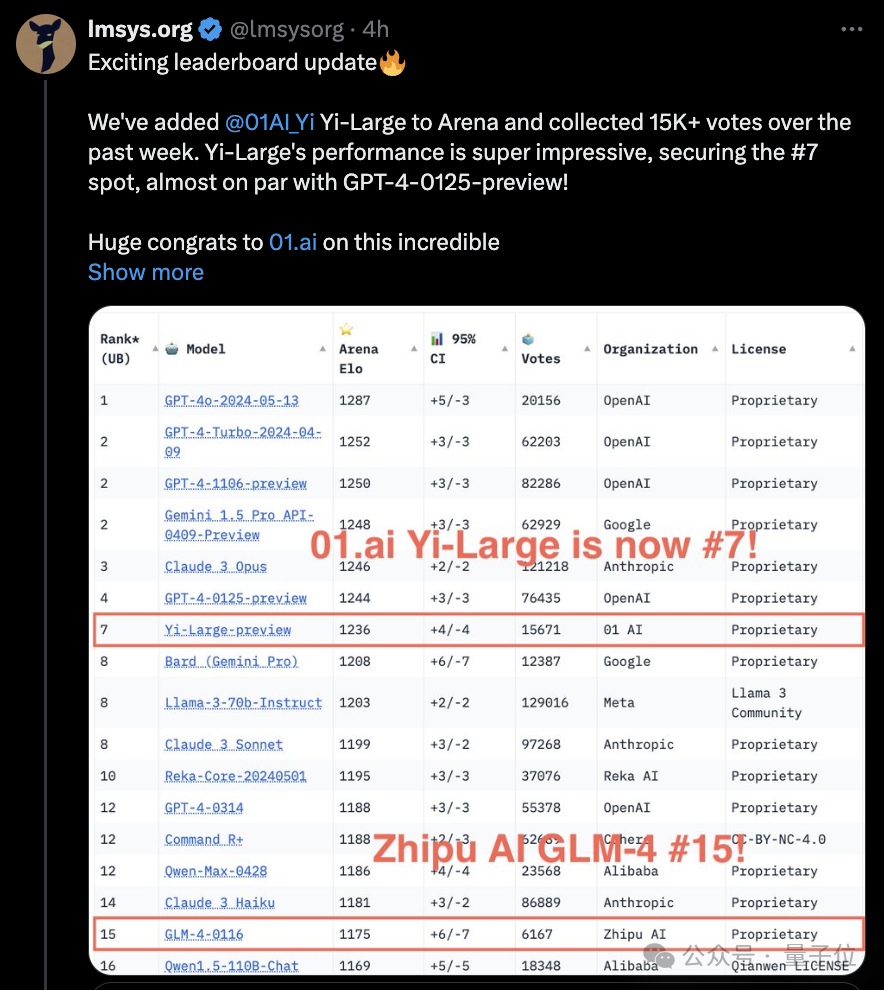 零一万物创始人兼CEO李开复博士为此表示,LMSYS提供了一个第三方的、公正的平台,其他竞争对手也都非常认可。