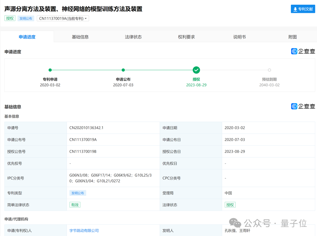 而且通过公开资料,字节在去年申请的一项专利中也有他的身影。