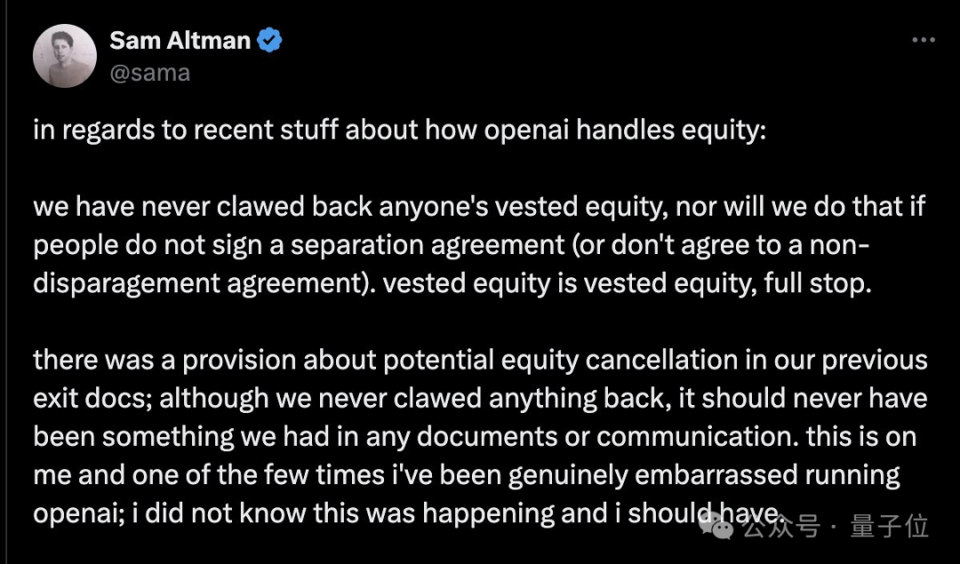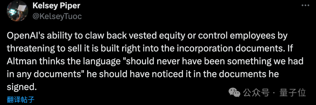 这与奥特曼之前声称“关于可能收回前雇员既得股权的措辞绝不应该出现在我们的任何文件或通信中”相悖。