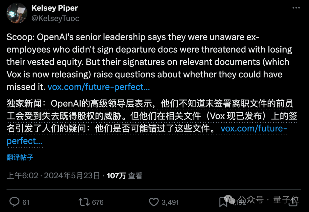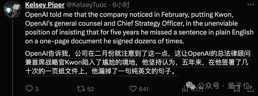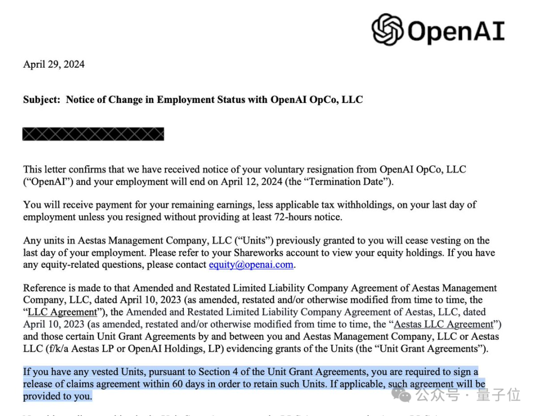 关于OpenAI离职霸王条款,又被挖出猛料。