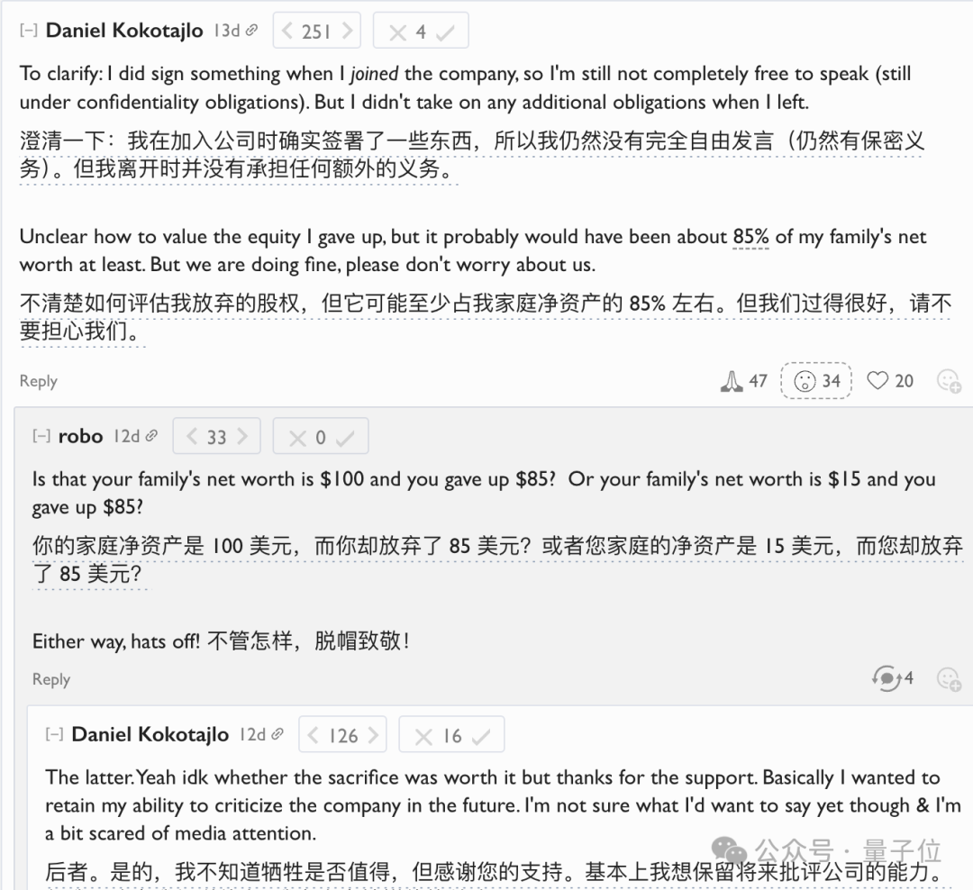 我知道这是一大笔钱,而且是不公平的选择,但我更看重保留建设性地批评OpenAI的权利。